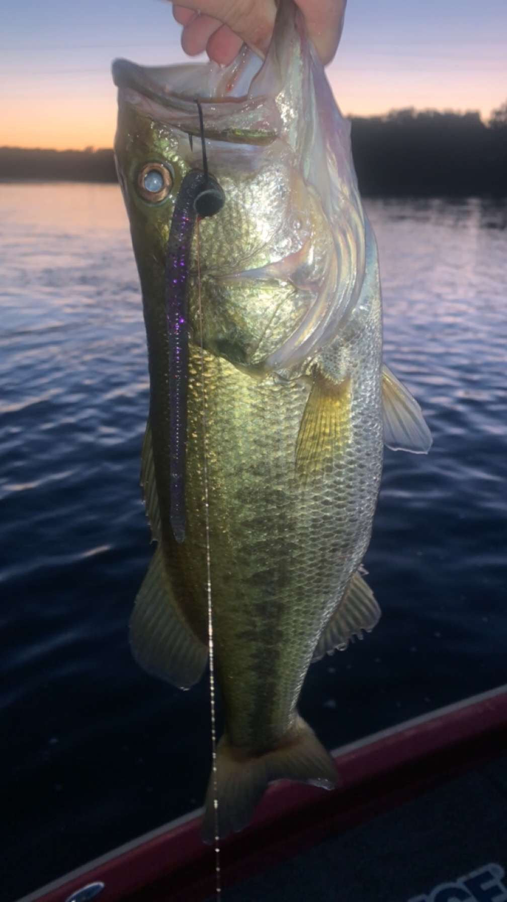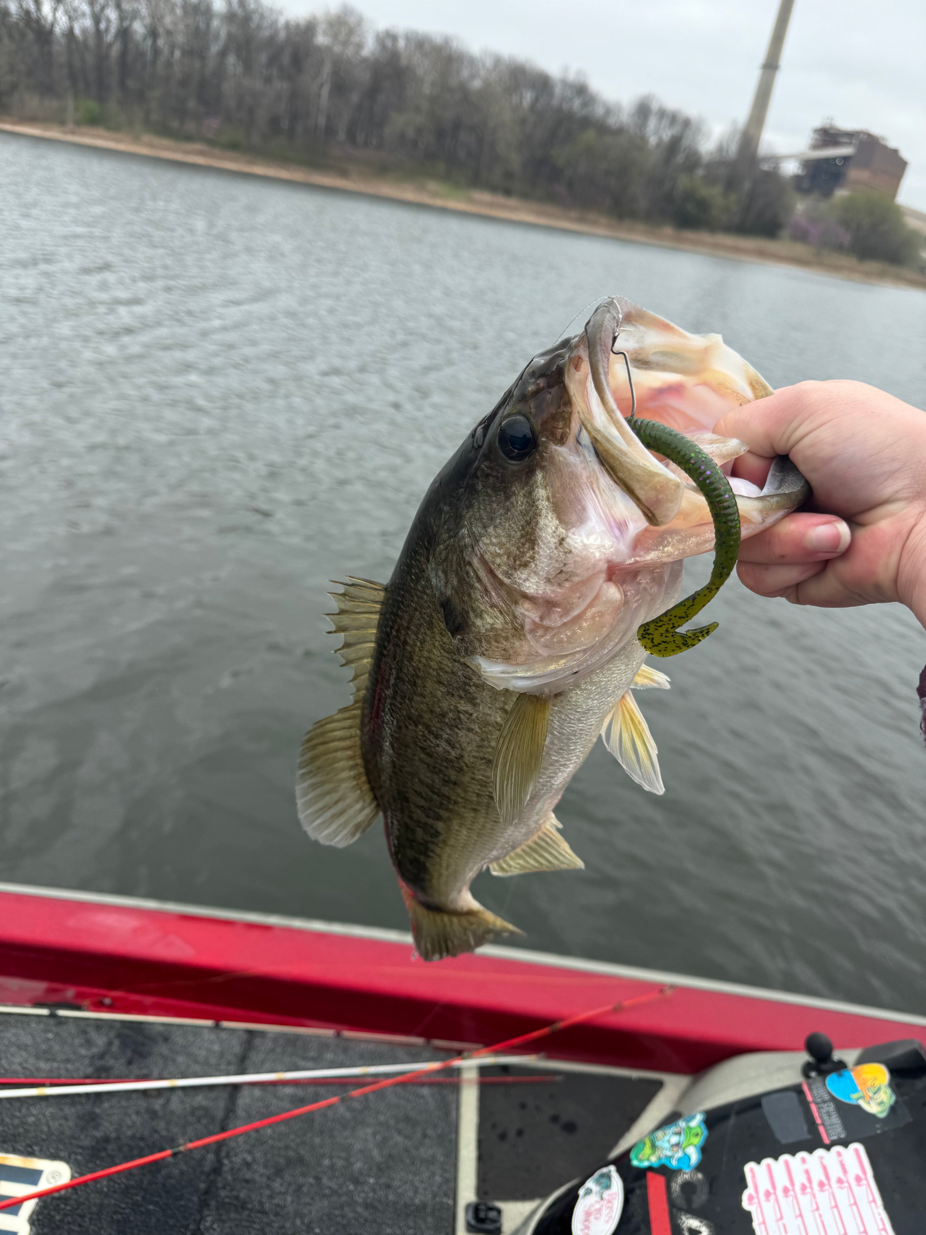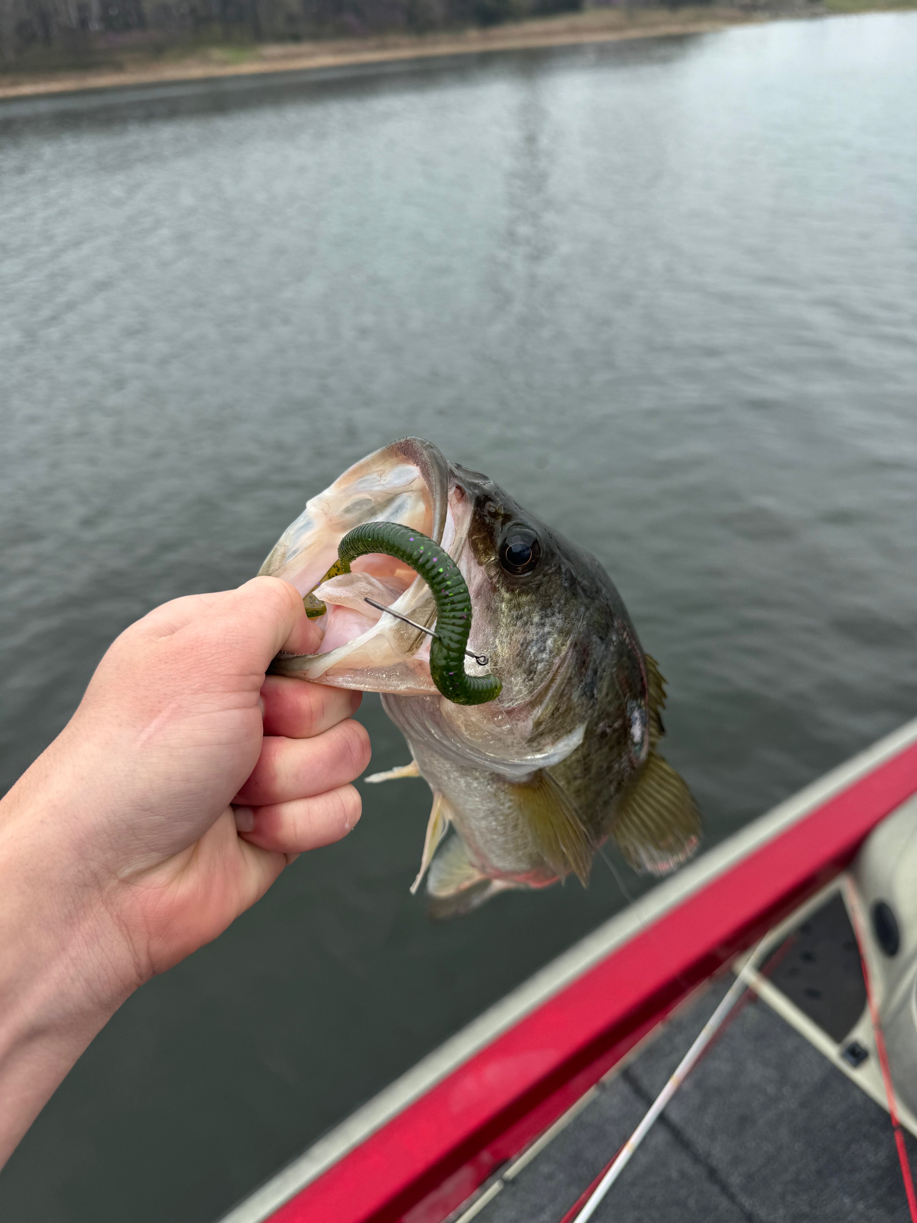 Caught with the 7" Curly Tail Worm - Watermelon Red.
