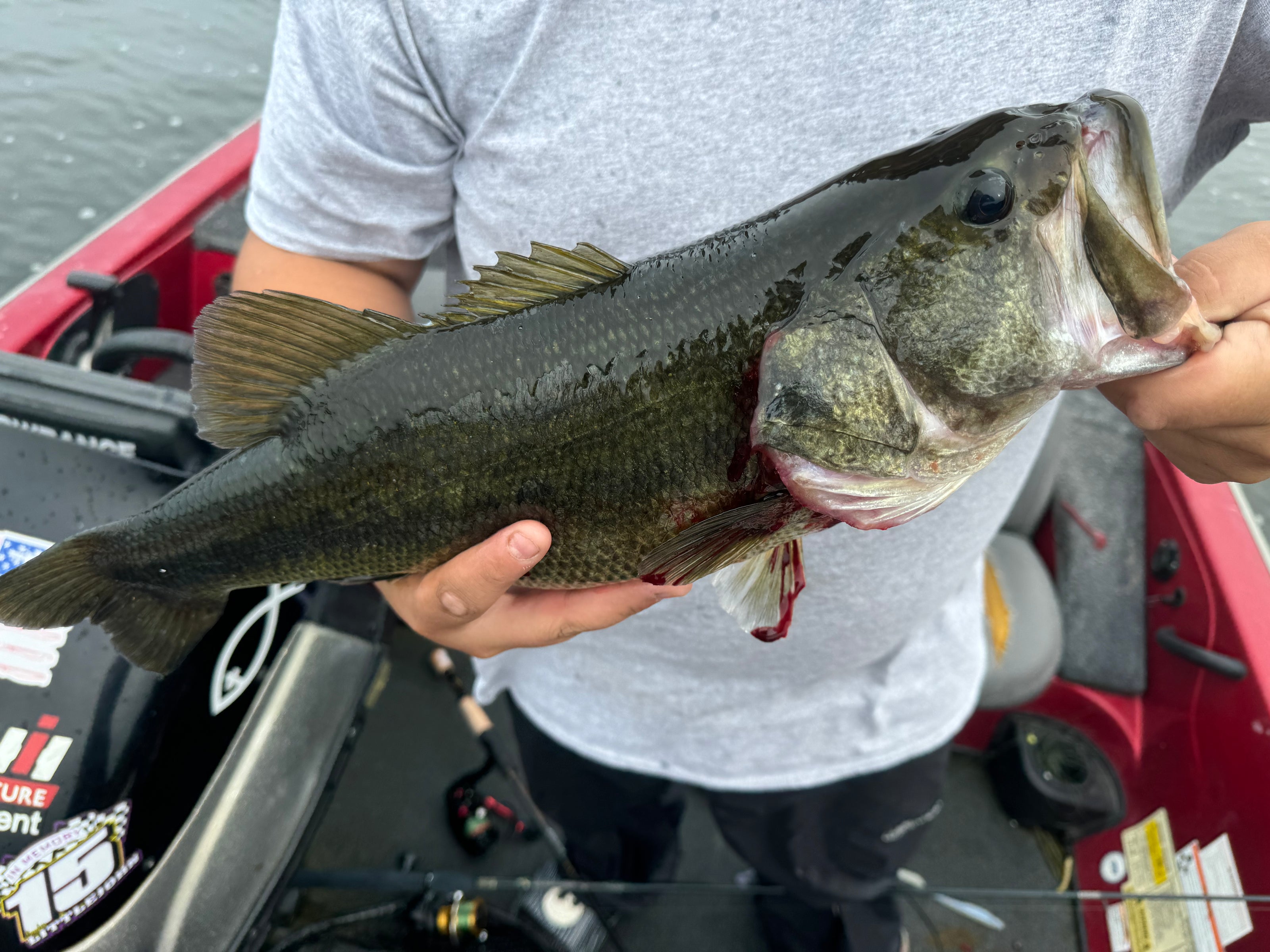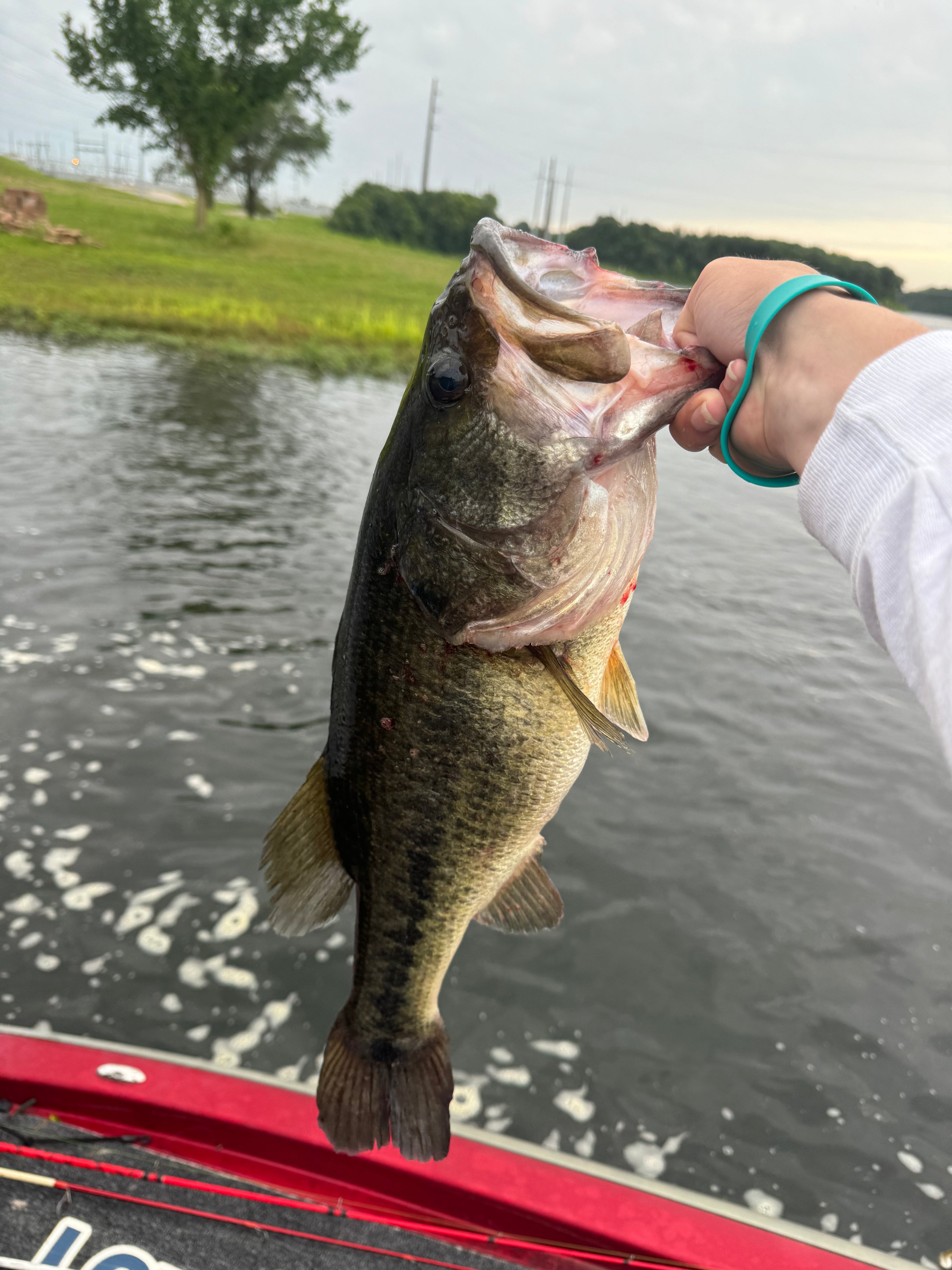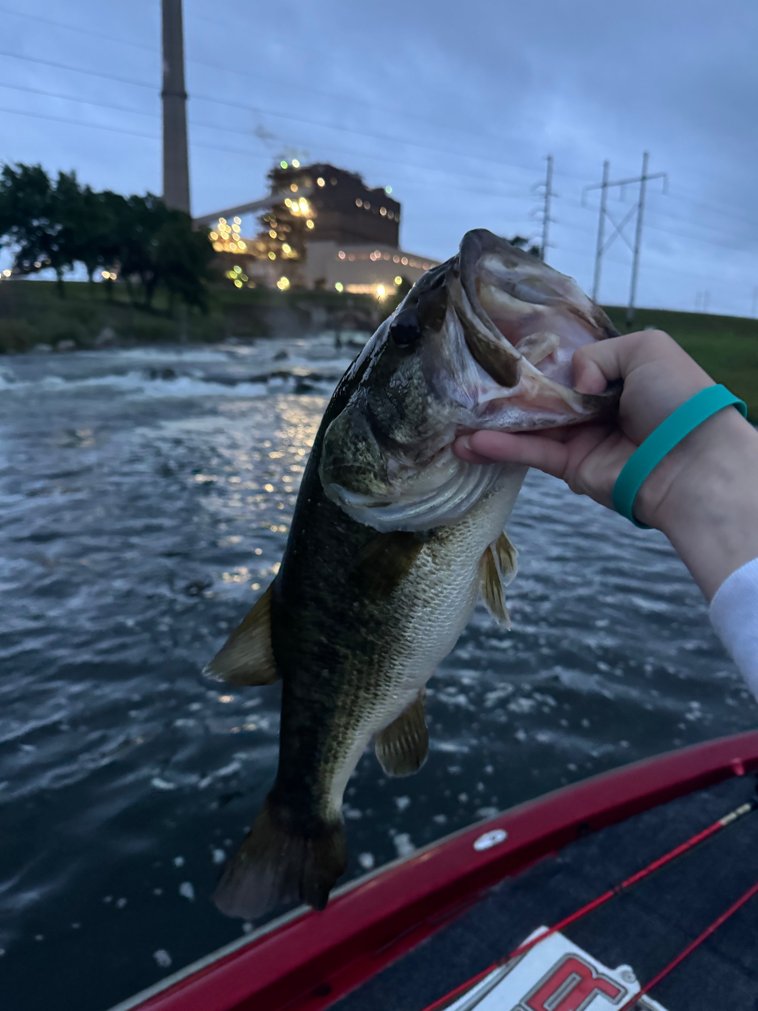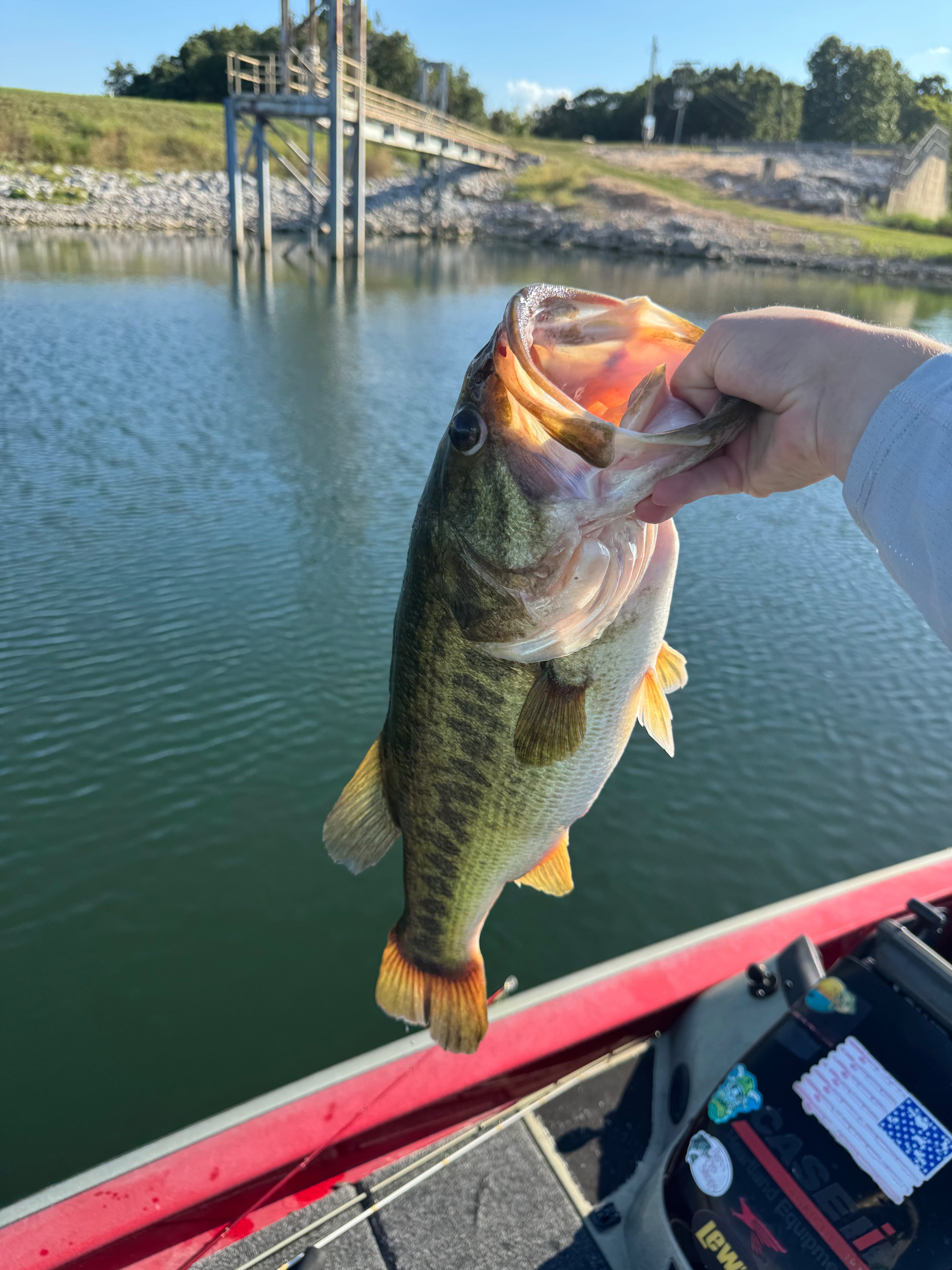 Caught with the 7" Curly Tail Worm - Watermelon Red.